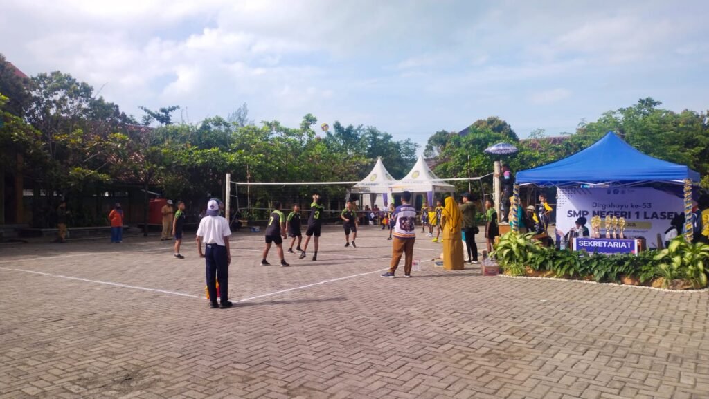 Perayaan Hari Ulang tahun SMP Negeri 1 Lasem ke-53 berlangsung meriah dan penuh semangat pada hari ini (19/01) di lingkungan sekolah. Acara diawali dengan sambutan dari Ketua Panitia ibu Sukarmi, S.Pd., yang menyampaikan rasa syukur atas partisipasi murid-murid Sekolah Dasar (SD) se-kabupaten Rembang yang mengikuti pertandingan lomba voli di SMPN 1 Lasem. Selanjutnya, acara dilanjutkan dengan sambutan dari Kepala SMP Negeri 1 Lasem Ibu Estu Budi Winarni, S.Pd., yang menyampaikan juga rasa syukur dan terimakasih kepada semua warga sekolah dan peserta lomba voli.